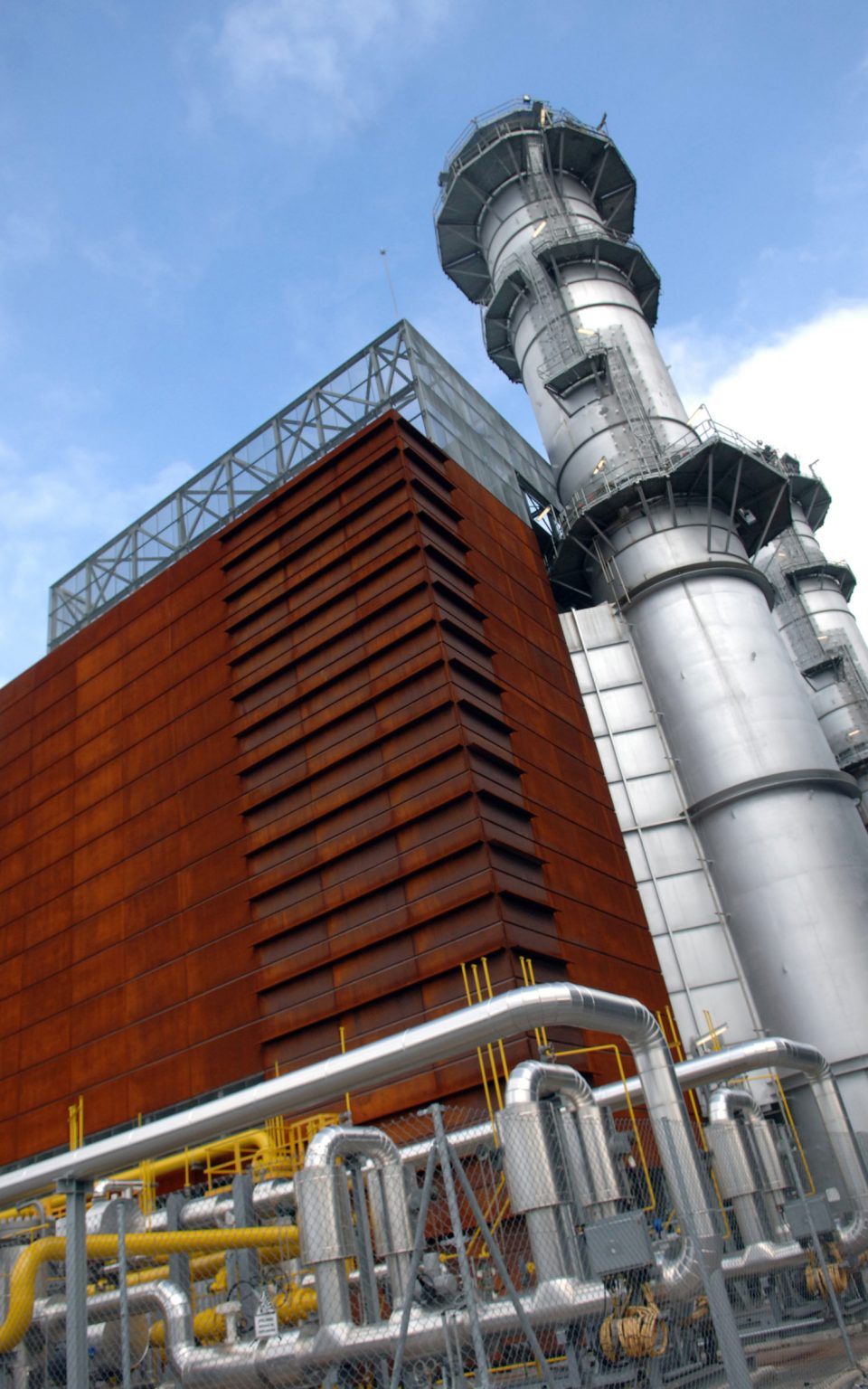The combined cycle at Boroa in Amorebieta (Biscay-Spain), with its 800 MW, provides high thermal efficiency with combustion of natural gas (55%) and low emissions of pollutants to the atmosphere. It has a multi-axis confi guration with two gas turbines, General Electric Fr 9FA model of 250 MW each, two recovery boilers with three pressure levels and one steam turbine of 280 MW.