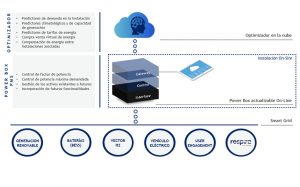 Este control Edge interactúa con el control superior de gestión de energía EMS que es una solución basada en la nube. EMS es una plataforma modular cuya operación está basada en algoritmia avanzada de optimización predictiva. Esta plataforma tiene como misión optimizar el funcionamiento de los activos energéticos (tanto eléctricos como térmicos) de una instalación o microrred de forma automática.